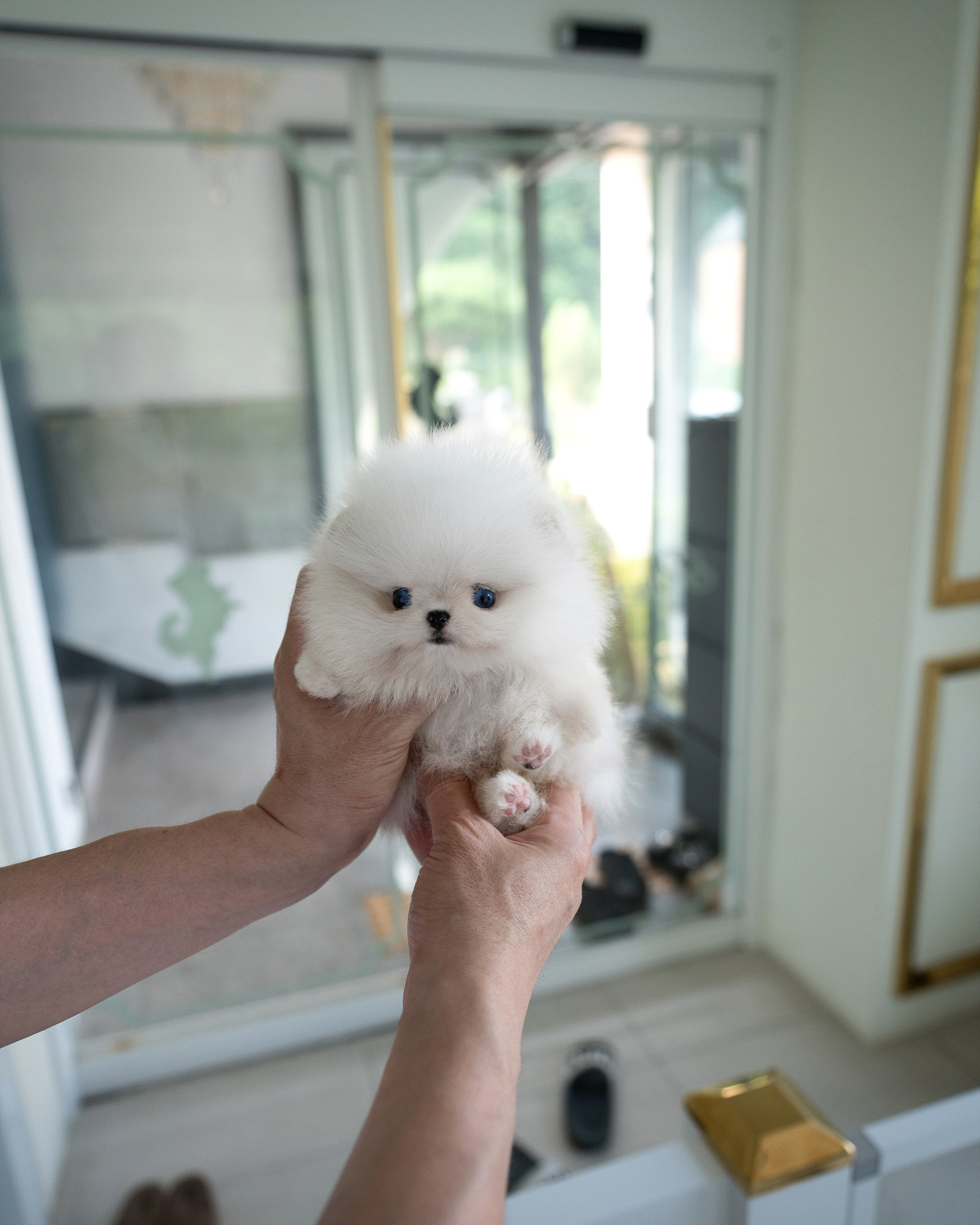 한 손에 쏘옥 들어오는 초소형 사이즈에, 말도 안 되게 풍성하고 깨끗한 화이트 코트, 그 위에 뽀얗게 올라앉은 조막만 한 블루 눈동자.