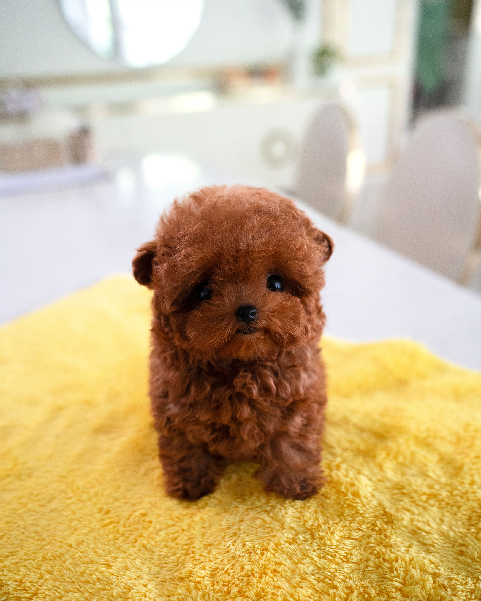 로즈는 흔치 않은 선명한 레드 컬러를 지녔어요. 붉은빛이 오묘하게 도는 고급 모색이라, 산책 나가면 시선 집중은 기본 ! 모량이 정말 풍성해서 어릴 때부터 테디베어 컷이 찰떡. 성장해도 인형 같은 비주얼 유지 가능하답니다.