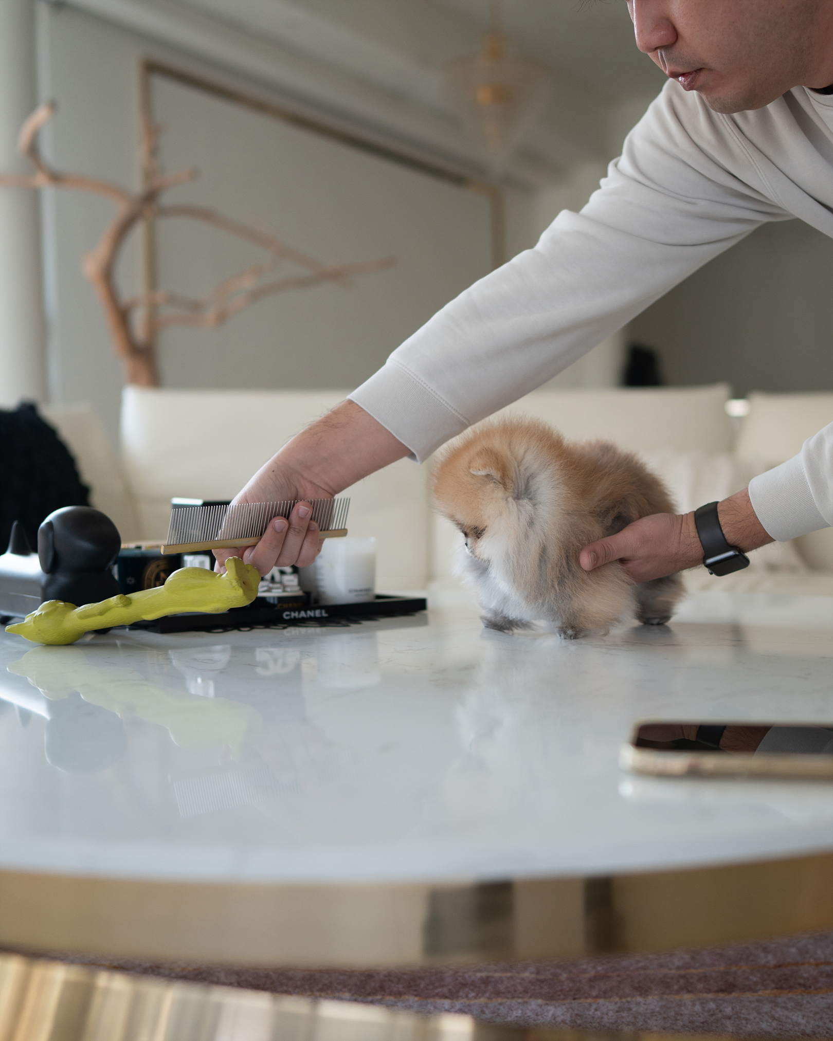 빗이 가까이 와도 몸을 맡깁니다.